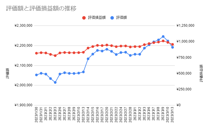 2023年 3月13日 保有銘柄の評価額の推移とその割合は⁉️